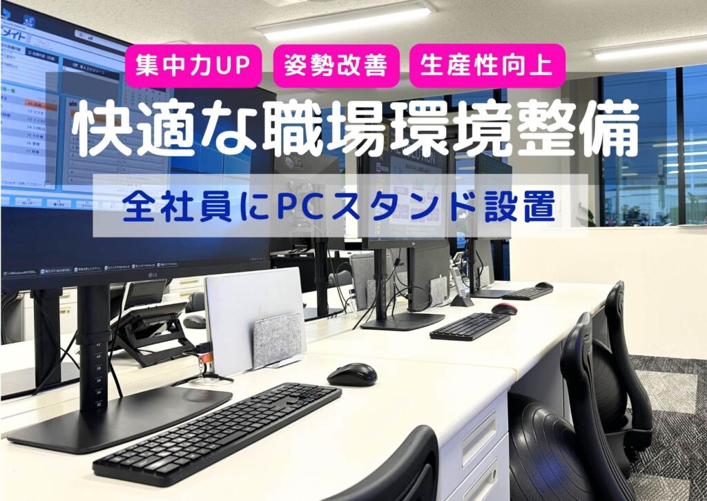 社員の快適な職場環境をサポートをするため、新たにPCスタンドを導入致しました。