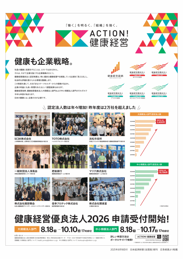 今後も「社員の健康」と「会社の成長」を両立させるための施策を継続的に推進し、地域社会にも貢献できる企業を目指してまいります。