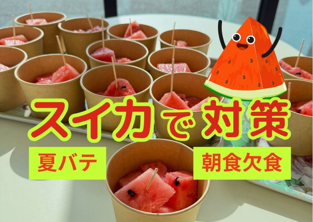 今回、地域の農家様よりご提供いただいた新鮮なスイカを活用し、朝食欠食対策として全社員へ配付いたしました。