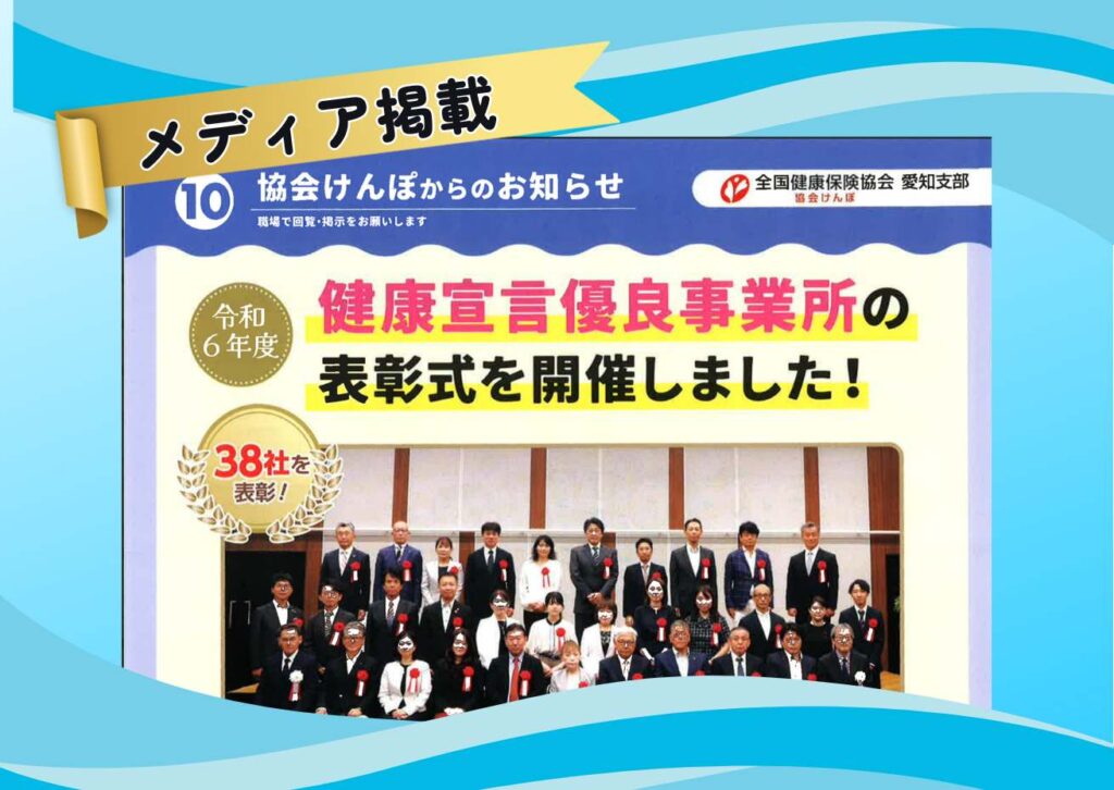 このたび、全国健康保険協会 愛知支部(協会けんぽ)様の『協会けんぽからのお知らせ』において、弊社が「健康宣言優良事業所」として紹介されました。