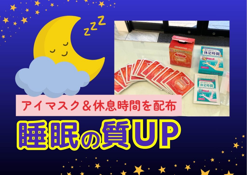 12月のヘルシーデーは、先月に引き続き「睡眠」をテーマに実施し、社員の皆さまに蒸気でホットアイマスクと休息時間をお配りいたしました。