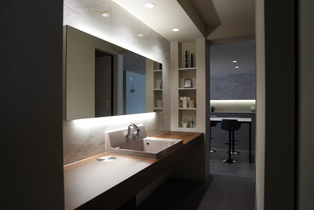 化粧室も、豊かさを感じられるホテルのような洗練されたデザインへと一新しました。清潔で美しい環境は、日々の業務における小さなストレスを軽減し、気持ちのゆとりを生み出します。